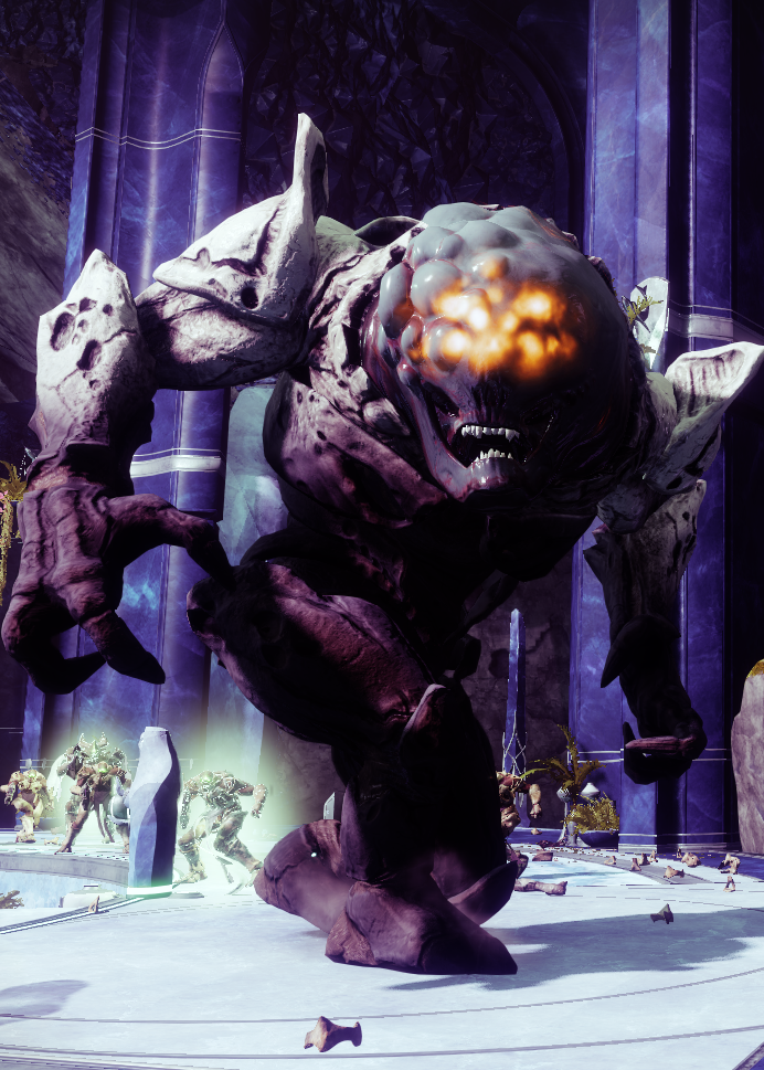 This image is a screenshot of a character or AI unit from the Destiny series of first-person shooter video games developed by Bungie Studios and published by Bungie or Activision. It falls under the screenshot category for a copyrighted computer game or video game, and the copyright for it is most likely held by the company that developed the game. It is believed that the use of a limited number of web-resolution screenshots: