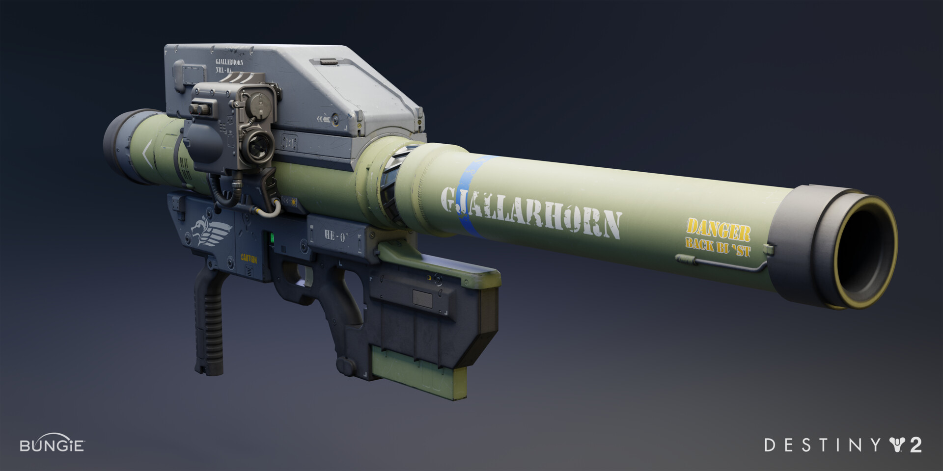This image is a screenshot of a weapon from the Destiny series of first-person shooter video games developed by Bungie Studios and published by Bungie or Activision. It falls under the screenshot category for a copyrighted computer game or video game, and the copyright for it is most likely held by the company that developed the game. It is believed that the use of a limited number of web-resolution screenshots: