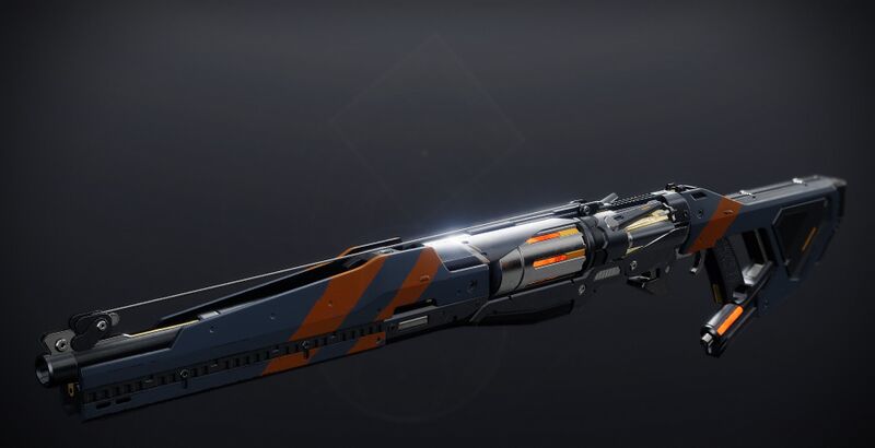 This image is a screenshot of a weapon from the Destiny series of first-person shooter video games developed by Bungie Studios and published by Bungie or Activision. It falls under the screenshot category for a copyrighted computer game or video game, and the copyright for it is most likely held by the company that developed the game. It is believed that the use of a limited number of web-resolution screenshots: