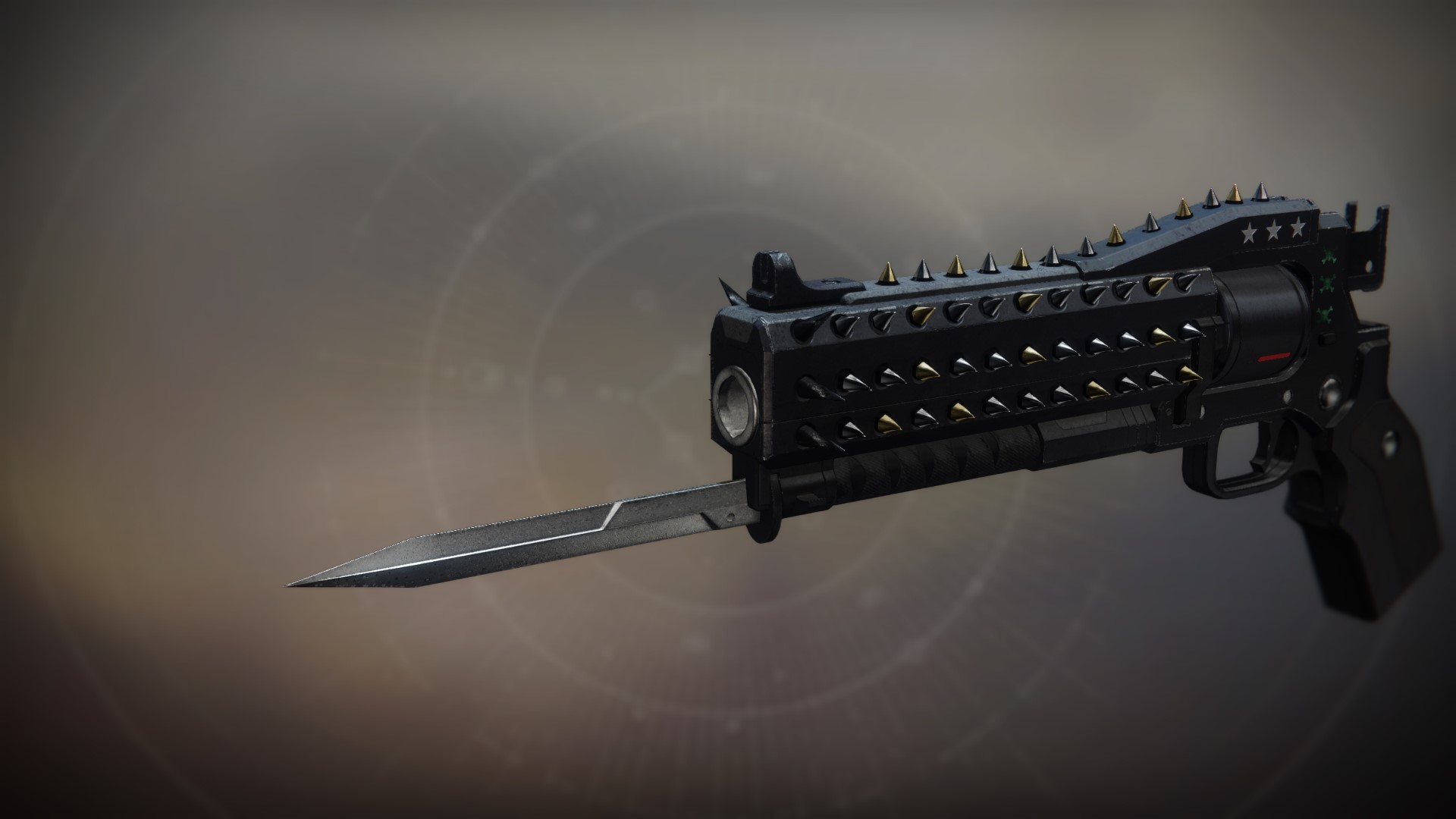 This image is a screenshot of a weapon from the Destiny series of first-person shooter video games developed by Bungie Studios and published by Bungie or Activision. It falls under the screenshot category for a copyrighted computer game or video game, and the copyright for it is most likely held by the company that developed the game. It is believed that the use of a limited number of web-resolution screenshots: