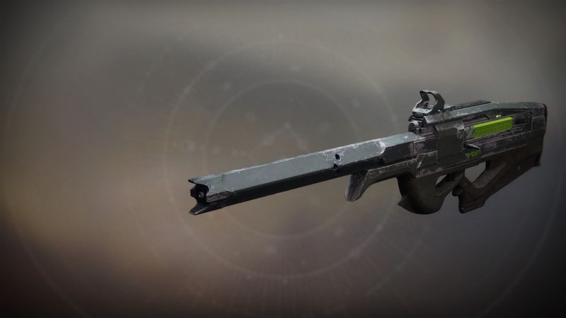 This image is a screenshot of a weapon from the Destiny series of first-person shooter video games developed by Bungie Studios and published by Bungie or Activision. It falls under the screenshot category for a copyrighted computer game or video game, and the copyright for it is most likely held by the company that developed the game. It is believed that the use of a limited number of web-resolution screenshots: