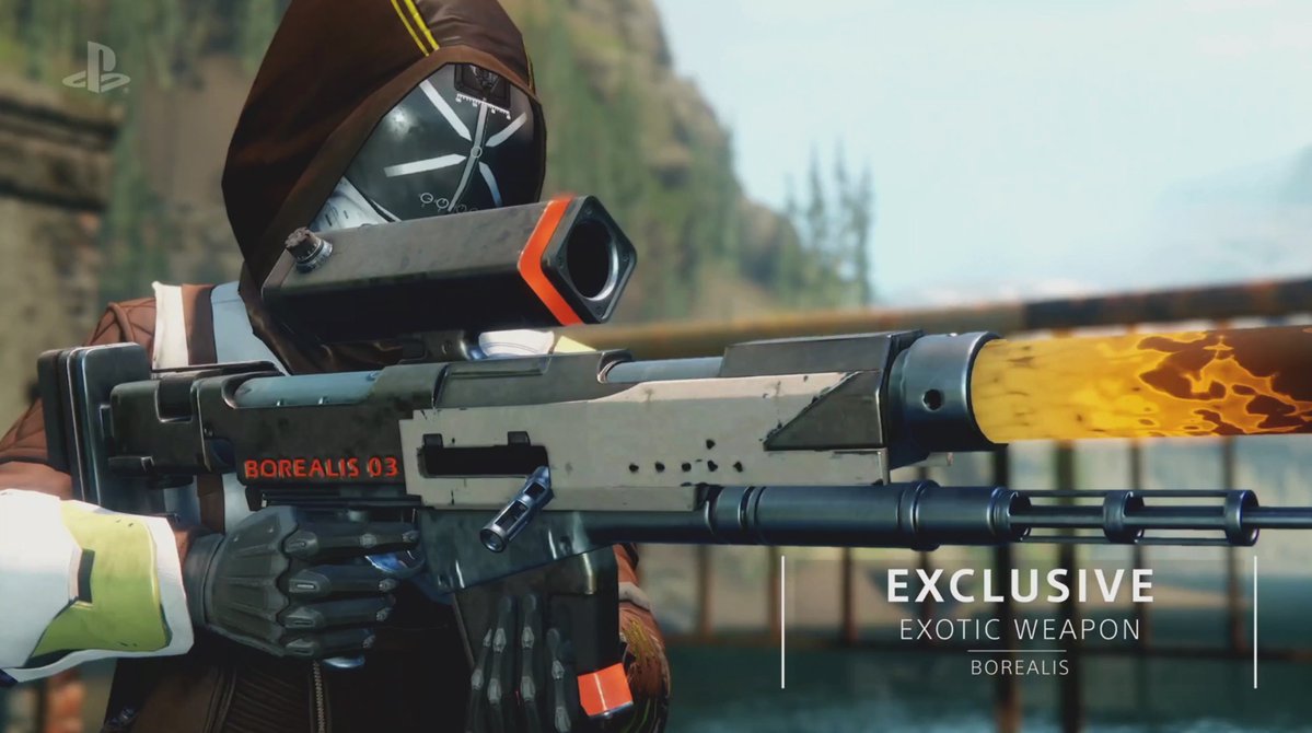 This image is a screenshot of a weapon from the Destiny series of first-person shooter video games developed by Bungie Studios and published by Bungie or Activision. It falls under the screenshot category for a copyrighted computer game or video game, and the copyright for it is most likely held by the company that developed the game. It is believed that the use of a limited number of web-resolution screenshots: