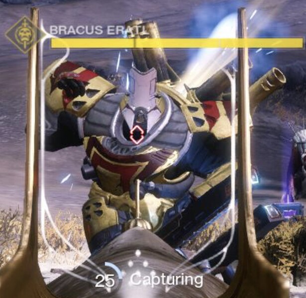 This image is a screenshot of a character or AI unit from the Destiny series of first-person shooter video games developed by Bungie Studios and published by Bungie or Activision. It falls under the screenshot category for a copyrighted computer game or video game, and the copyright for it is most likely held by the company that developed the game. It is believed that the use of a limited number of web-resolution screenshots: