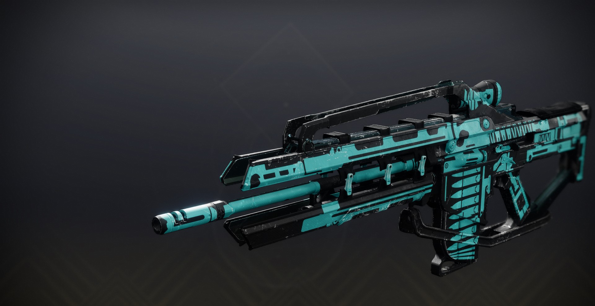 This image is a screenshot of a weapon from the Destiny series of first-person shooter video games developed by Bungie Studios and published by Bungie or Activision. It falls under the screenshot category for a copyrighted computer game or video game, and the copyright for it is most likely held by the company that developed the game. It is believed that the use of a limited number of web-resolution screenshots: