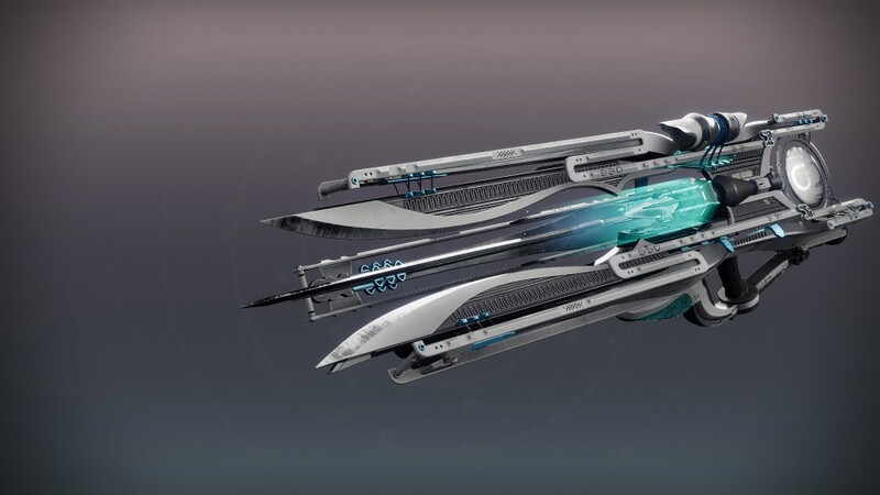 This image is a screenshot of a weapon from the Destiny series of first-person shooter video games developed by Bungie Studios and published by Bungie or Activision. It falls under the screenshot category for a copyrighted computer game or video game, and the copyright for it is most likely held by the company that developed the game. It is believed that the use of a limited number of web-resolution screenshots: