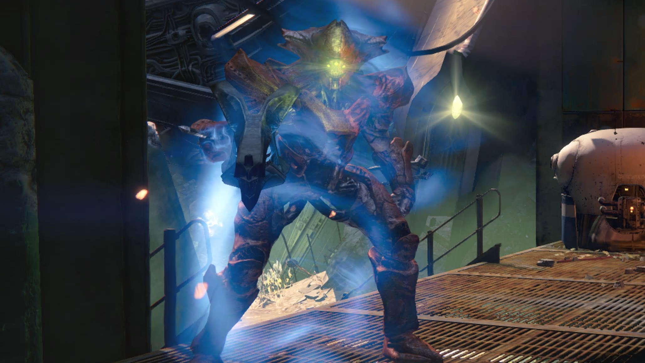 This image is a screenshot of a character or AI unit from the Destiny series of first-person shooter video games developed by Bungie Studios and published by Bungie or Activision. It falls under the screenshot category for a copyrighted computer game or video game, and the copyright for it is most likely held by the company that developed the game. It is believed that the use of a limited number of web-resolution screenshots: