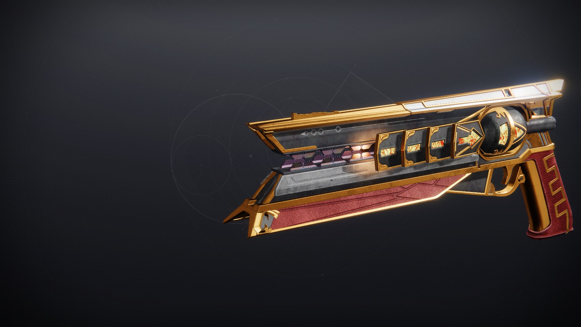 This image is a screenshot of a weapon from the Destiny series of first-person shooter video games developed by Bungie Studios and published by Bungie or Activision. It falls under the screenshot category for a copyrighted computer game or video game, and the copyright for it is most likely held by the company that developed the game. It is believed that the use of a limited number of web-resolution screenshots: