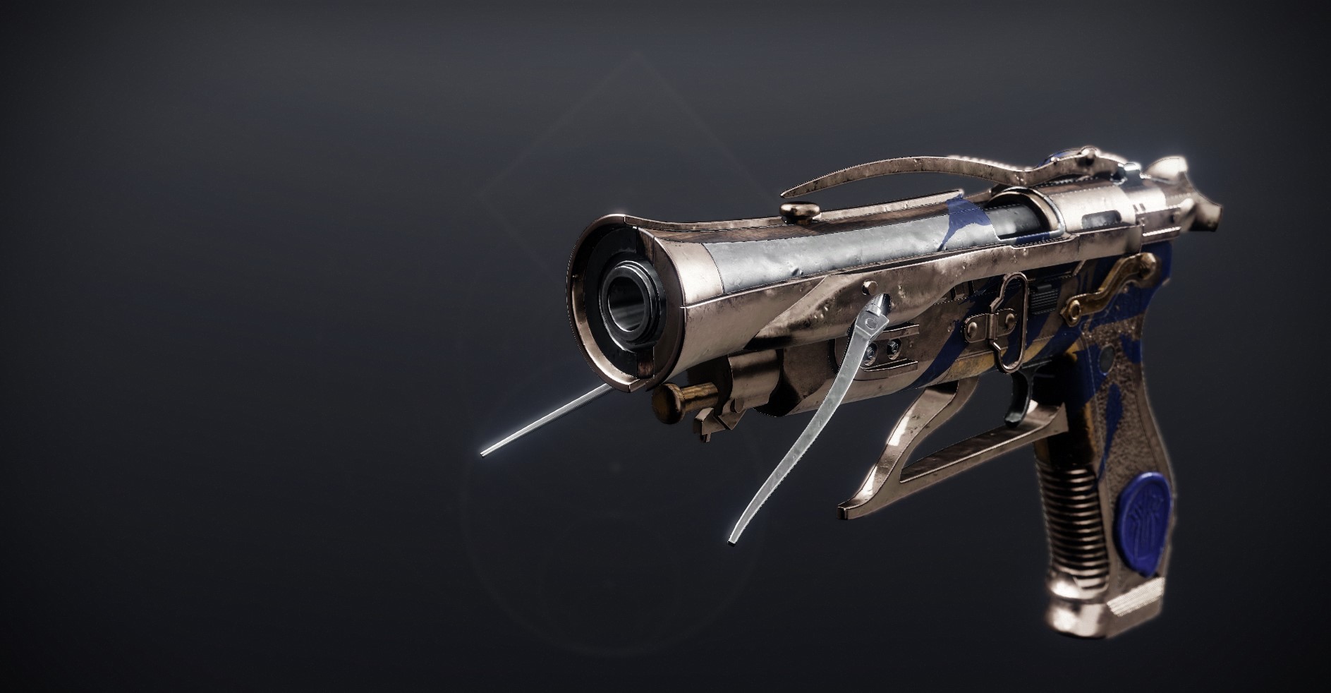 This image is a screenshot of a weapon from the Destiny series of first-person shooter video games developed by Bungie Studios and published by Bungie or Activision. It falls under the screenshot category for a copyrighted computer game or video game, and the copyright for it is most likely held by the company that developed the game. It is believed that the use of a limited number of web-resolution screenshots: