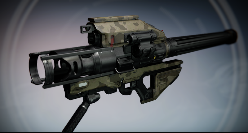 This image is a screenshot of a weapon from the Destiny series of first-person shooter video games developed by Bungie Studios and published by Bungie or Activision. It falls under the screenshot category for a copyrighted computer game or video game, and the copyright for it is most likely held by the company that developed the game. It is believed that the use of a limited number of web-resolution screenshots: