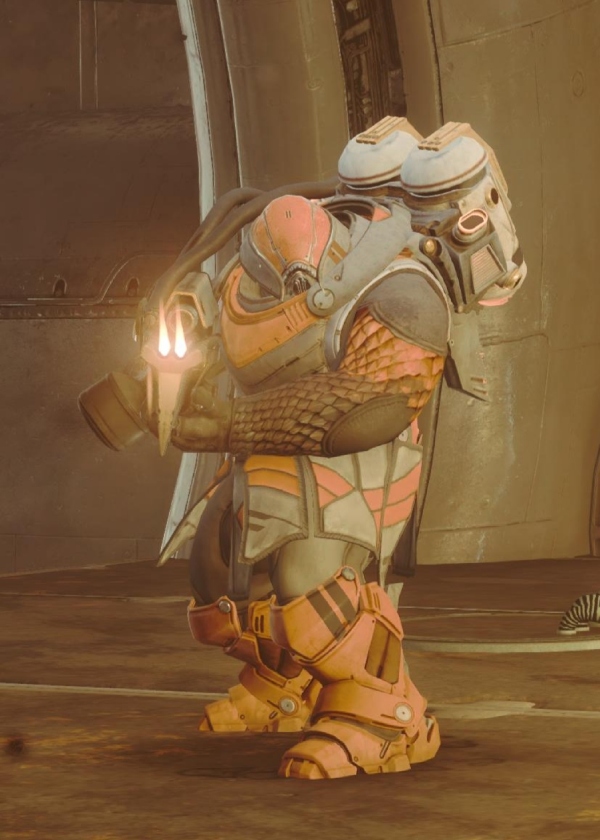 This image is a screenshot of a character or AI unit from the Destiny series of first-person shooter video games developed by Bungie Studios and published by Bungie or Activision. It falls under the screenshot category for a copyrighted computer game or video game, and the copyright for it is most likely held by the company that developed the game. It is believed that the use of a limited number of web-resolution screenshots: