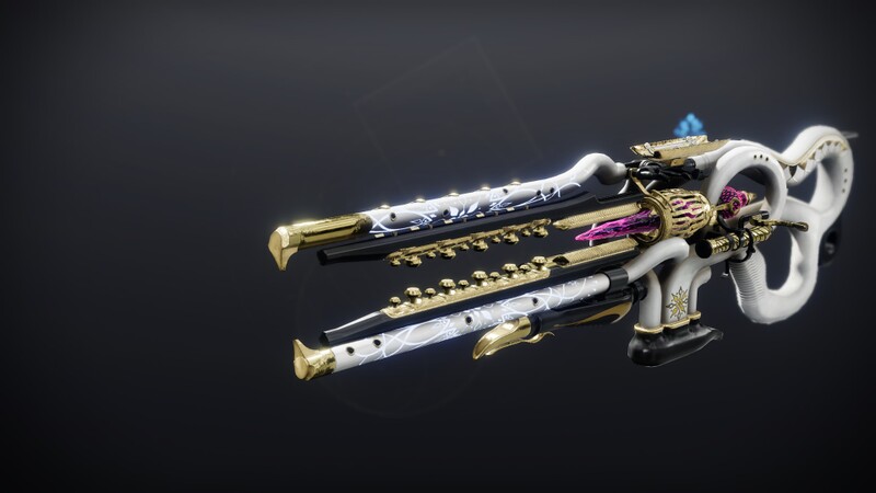 This image is a screenshot of a weapon from the Destiny series of first-person shooter video games developed by Bungie Studios and published by Bungie or Activision. It falls under the screenshot category for a copyrighted computer game or video game, and the copyright for it is most likely held by the company that developed the game. It is believed that the use of a limited number of web-resolution screenshots: