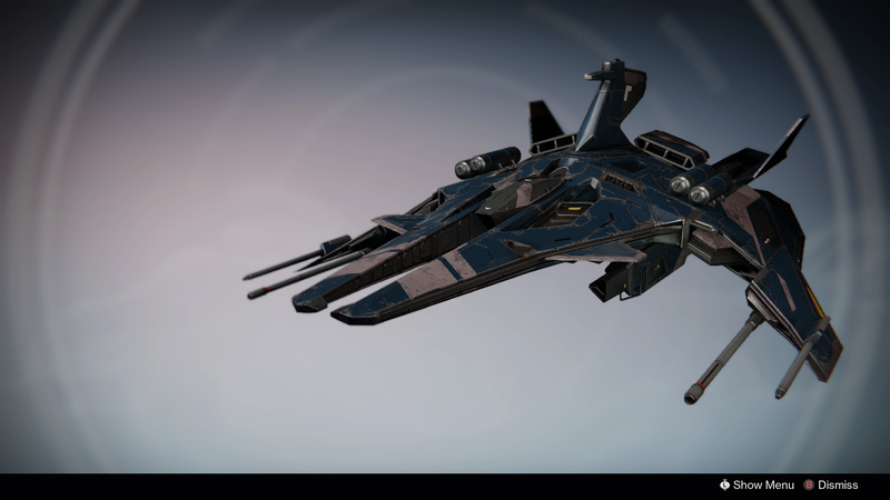 This image is a screenshot of a vehicle from the Destiny series of first-person shooter video games developed by Bungie Studios and published by Bungie or Activision. It falls under the screenshot category for a copyrighted computer game or video game, and the copyright for it is most likely held by the company that developed the game. It is believed that the use of a limited number of web-resolution screenshots: