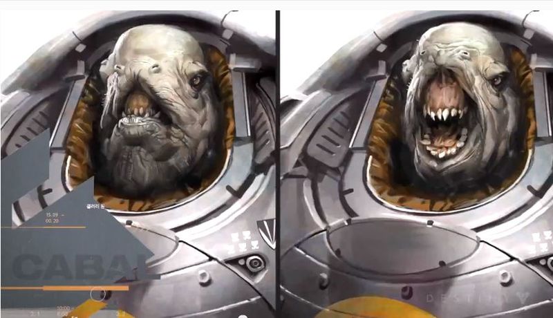 Concept art of Cabal facial expressions, screencaptured from the GDC Character Development YouTube video.