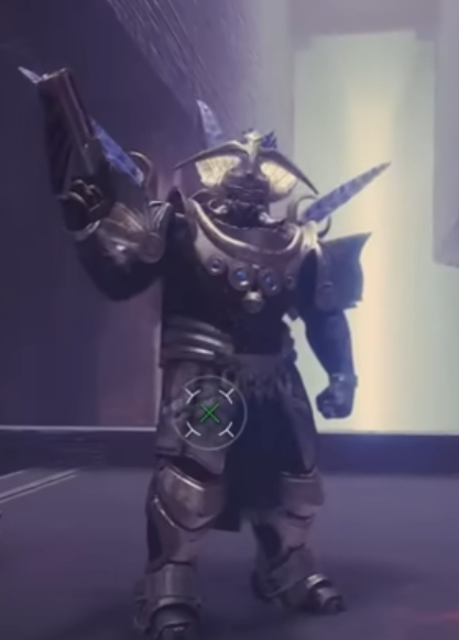 This image is a screenshot of a character or AI unit from the Destiny series of first-person shooter video games developed by Bungie Studios and published by Bungie or Activision. It falls under the screenshot category for a copyrighted computer game or video game, and the copyright for it is most likely held by the company that developed the game. It is believed that the use of a limited number of web-resolution screenshots: