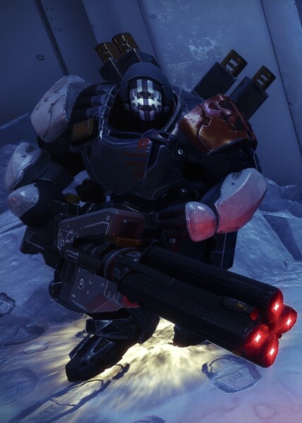 This image is a screenshot of a character or AI unit from the Destiny series of first-person shooter video games developed by Bungie Studios and published by Bungie or Activision. It falls under the screenshot category for a copyrighted computer game or video game, and the copyright for it is most likely held by the company that developed the game. It is believed that the use of a limited number of web-resolution screenshots: