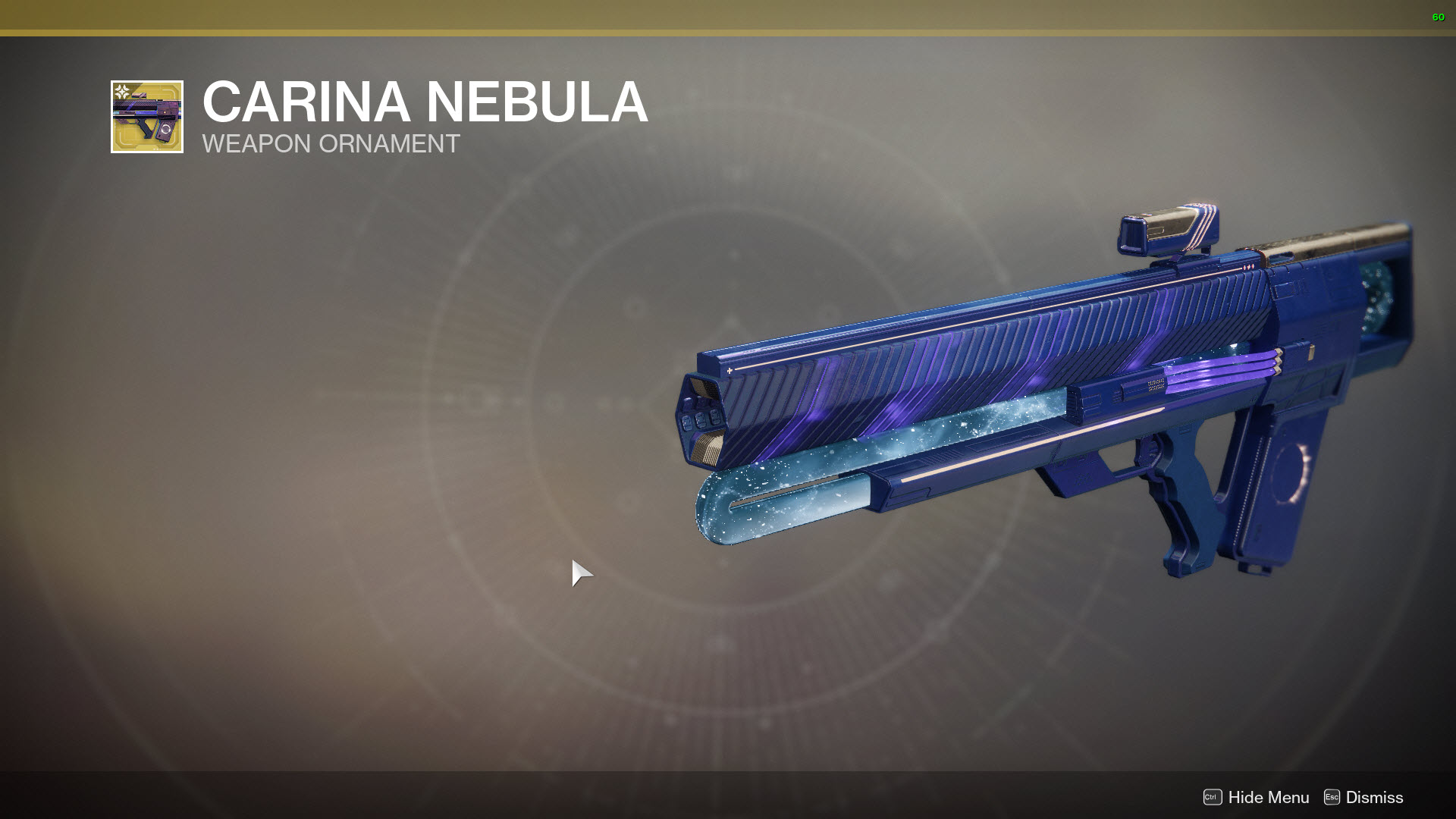 This image is a screenshot of a weapon from the Destiny series of first-person shooter video games developed by Bungie Studios and published by Bungie or Activision. It falls under the screenshot category for a copyrighted computer game or video game, and the copyright for it is most likely held by the company that developed the game. It is believed that the use of a limited number of web-resolution screenshots: