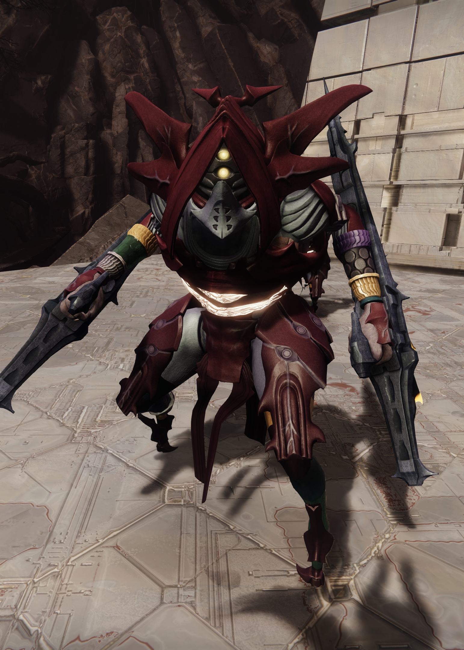 This image is a screenshot of a character or AI unit from the Destiny series of first-person shooter video games developed by Bungie Studios and published by Bungie or Activision. It falls under the screenshot category for a copyrighted computer game or video game, and the copyright for it is most likely held by the company that developed the game. It is believed that the use of a limited number of web-resolution screenshots: