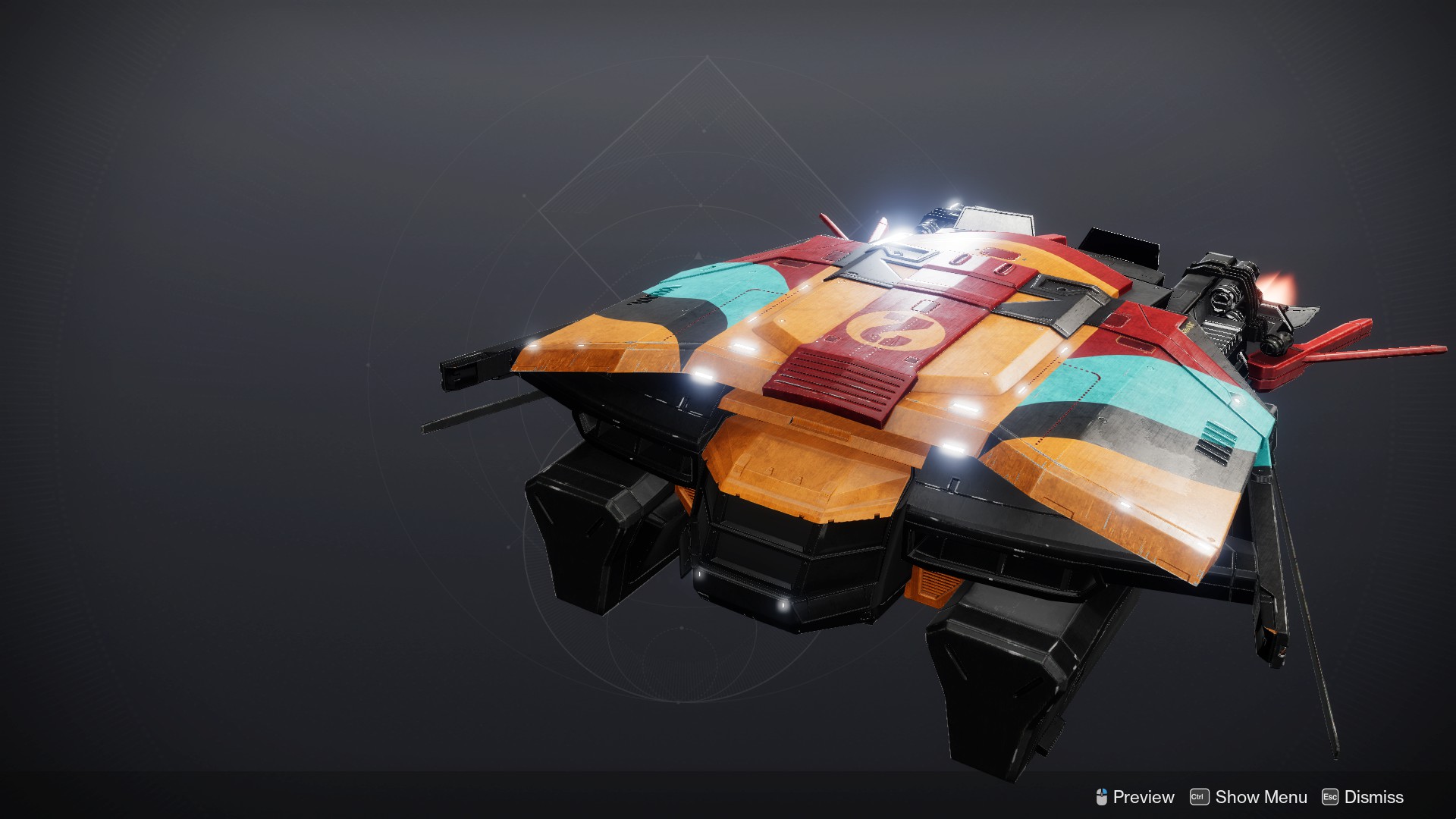 This image is a screenshot of a vehicle from the Destiny series of first-person shooter video games developed by Bungie Studios and published by Bungie or Activision. It falls under the screenshot category for a copyrighted computer game or video game, and the copyright for it is most likely held by the company that developed the game. It is believed that the use of a limited number of web-resolution screenshots: