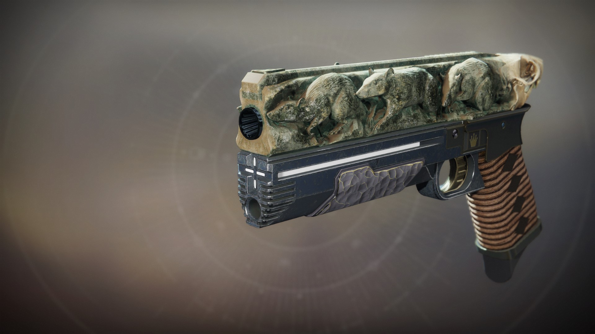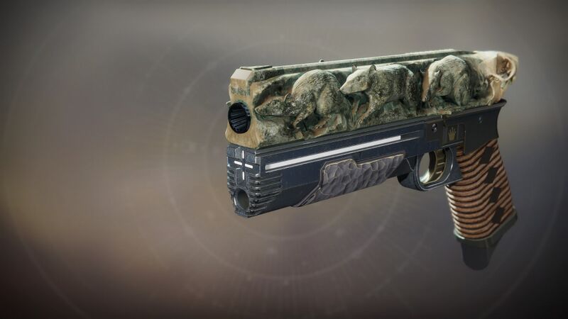 This image is a screenshot of a weapon from the Destiny series of first-person shooter video games developed by Bungie Studios and published by Bungie or Activision. It falls under the screenshot category for a copyrighted computer game or video game, and the copyright for it is most likely held by the company that developed the game. It is believed that the use of a limited number of web-resolution screenshots:
