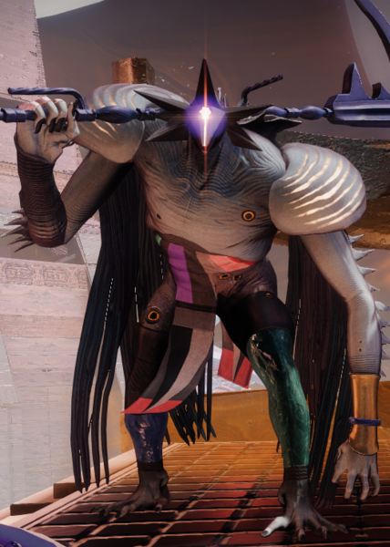This image is a screenshot of a character or AI unit from the Destiny series of first-person shooter video games developed by Bungie Studios and published by Bungie or Activision. It falls under the screenshot category for a copyrighted computer game or video game, and the copyright for it is most likely held by the company that developed the game. It is believed that the use of a limited number of web-resolution screenshots: