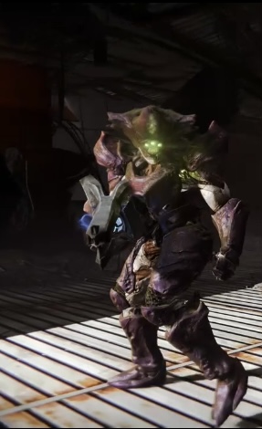 This image is a screenshot of a character or AI unit from the Destiny series of first-person shooter video games developed by Bungie Studios and published by Bungie or Activision. It falls under the screenshot category for a copyrighted computer game or video game, and the copyright for it is most likely held by the company that developed the game. It is believed that the use of a limited number of web-resolution screenshots: