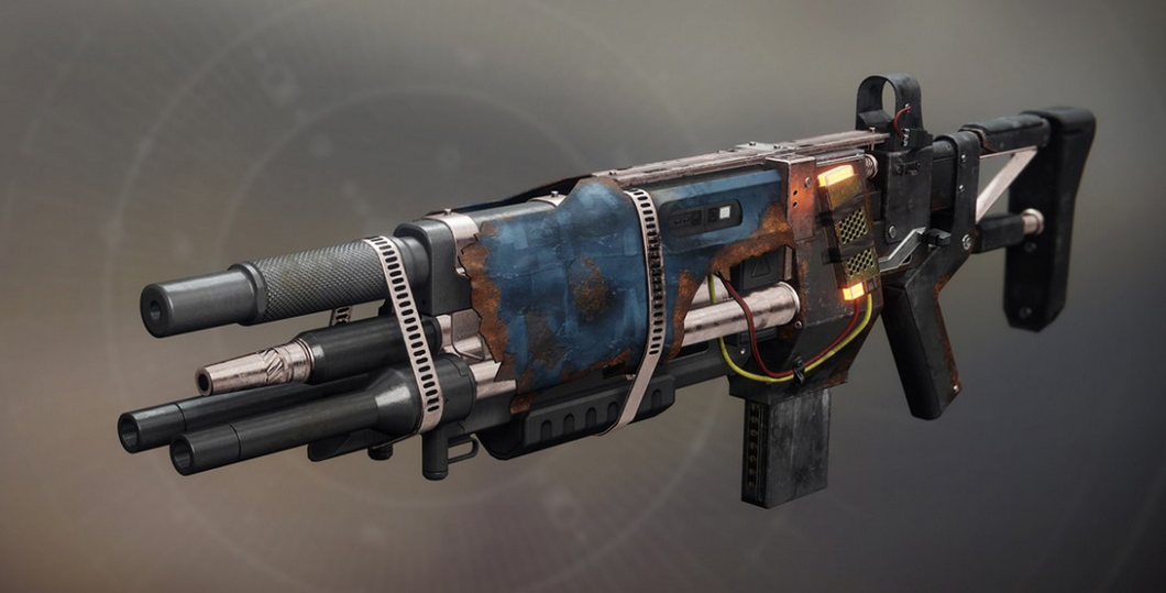 This image is a screenshot of a weapon from the Destiny series of first-person shooter video games developed by Bungie Studios and published by Bungie or Activision. It falls under the screenshot category for a copyrighted computer game or video game, and the copyright for it is most likely held by the company that developed the game. It is believed that the use of a limited number of web-resolution screenshots: