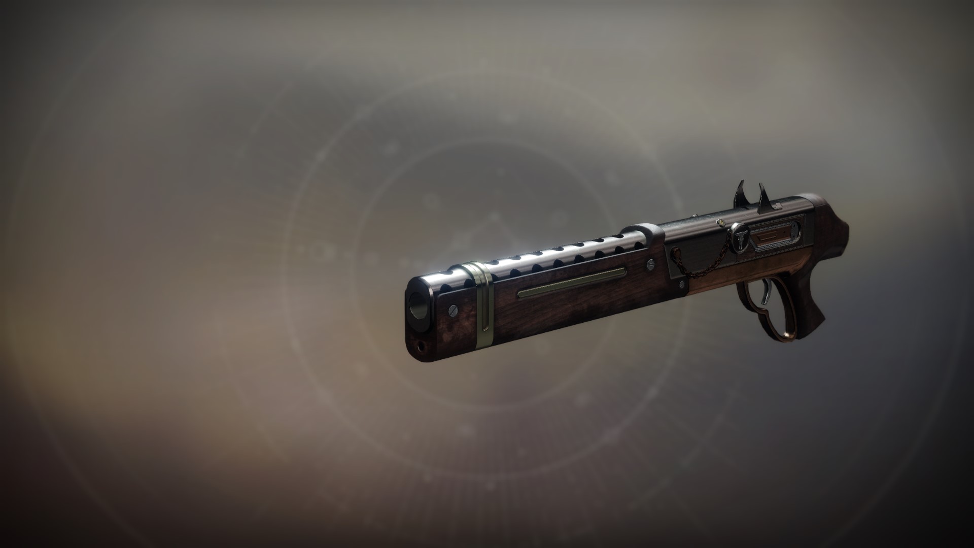 This image is a screenshot of a weapon from the Destiny series of first-person shooter video games developed by Bungie Studios and published by Bungie or Activision. It falls under the screenshot category for a copyrighted computer game or video game, and the copyright for it is most likely held by the company that developed the game. It is believed that the use of a limited number of web-resolution screenshots: