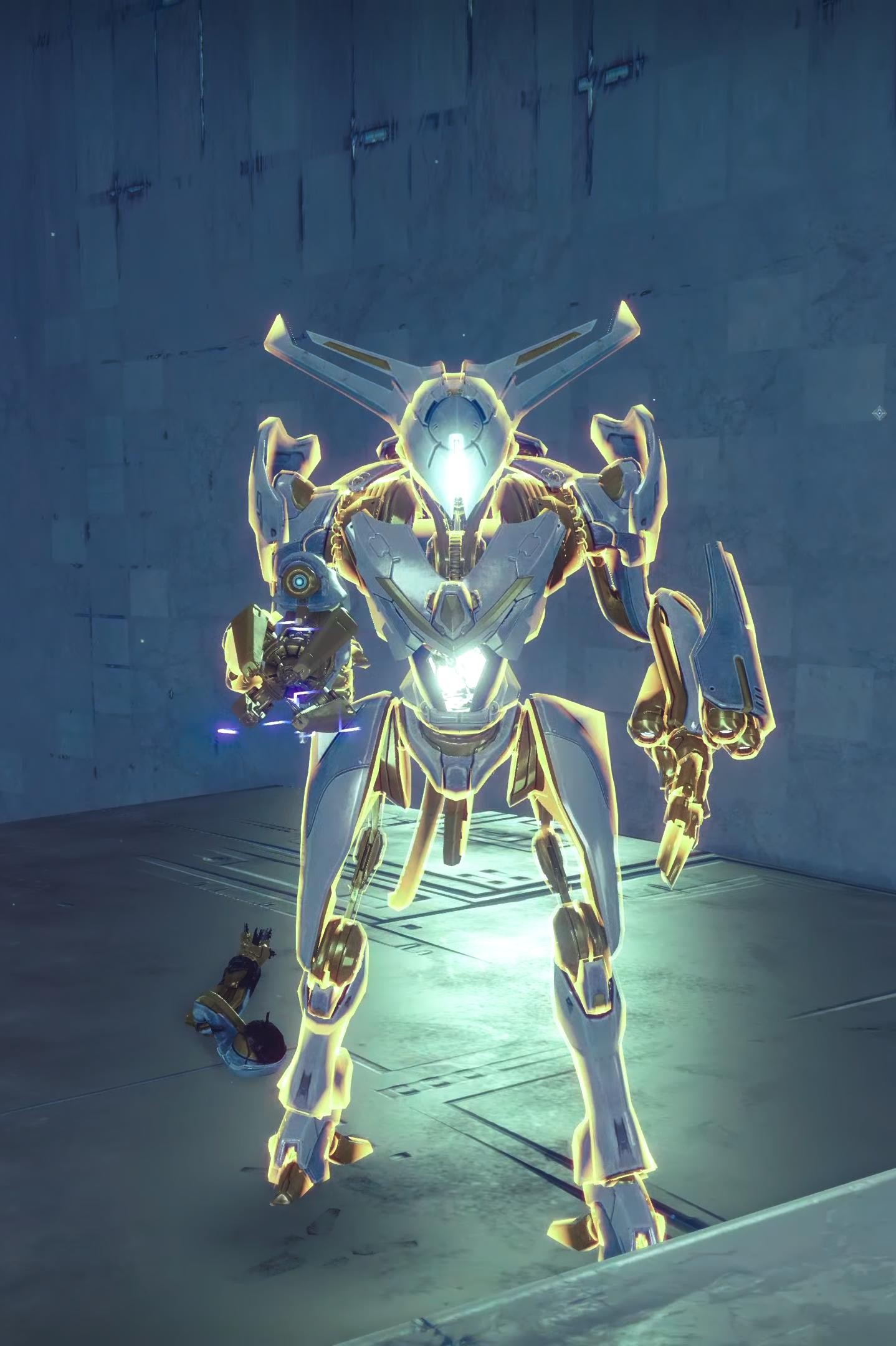 This image is a screenshot of a character or AI unit from the Destiny series of first-person shooter video games developed by Bungie Studios and published by Bungie or Activision. It falls under the screenshot category for a copyrighted computer game or video game, and the copyright for it is most likely held by the company that developed the game. It is believed that the use of a limited number of web-resolution screenshots: