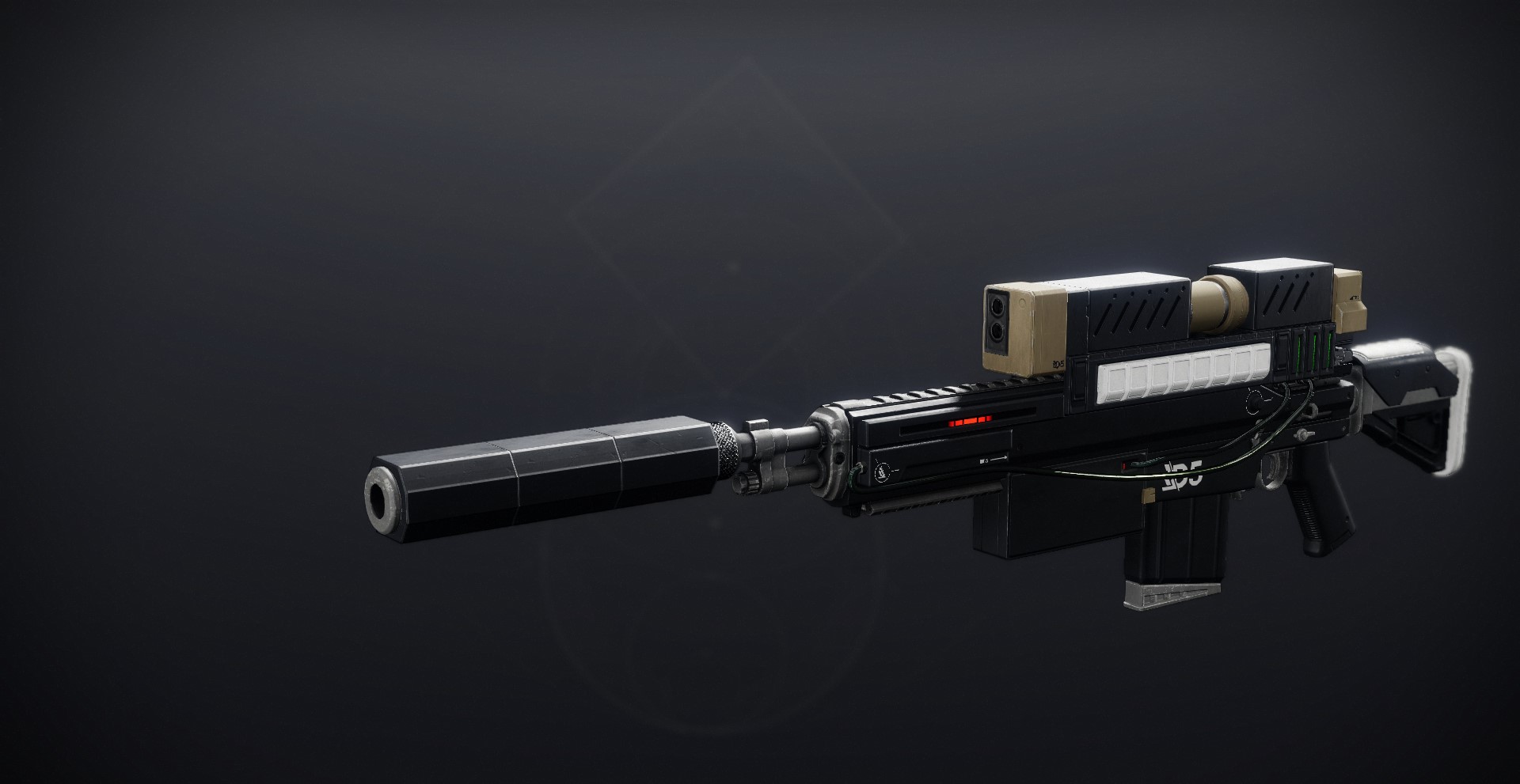 This image is a screenshot of a weapon from the Destiny series of first-person shooter video games developed by Bungie Studios and published by Bungie or Activision. It falls under the screenshot category for a copyrighted computer game or video game, and the copyright for it is most likely held by the company that developed the game. It is believed that the use of a limited number of web-resolution screenshots: