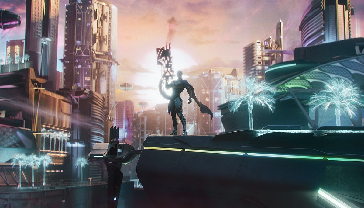 Cropped image of the Cloud Strider Nimbus as seen in the Lightfall reveal trailer, from the Lightfall Press Kit. https://press.bungie.com/Lightfall-reveal-press-kit