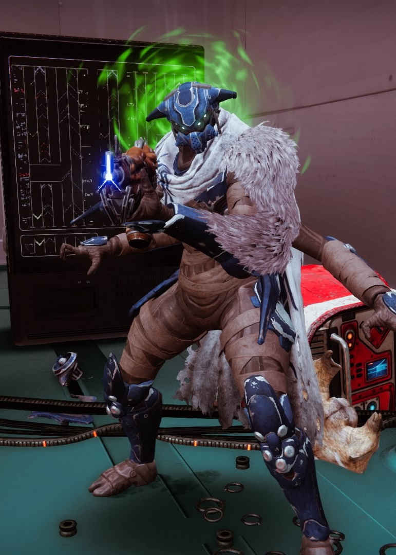 This image is a screenshot of a character or AI unit from the Destiny series of first-person shooter video games developed by Bungie Studios and published by Bungie or Activision. It falls under the screenshot category for a copyrighted computer game or video game, and the copyright for it is most likely held by the company that developed the game. It is believed that the use of a limited number of web-resolution screenshots:
