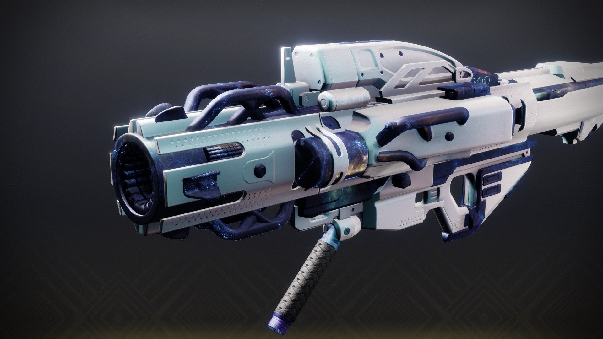 This image is a screenshot of a weapon from the Destiny series of first-person shooter video games developed by Bungie Studios and published by Bungie or Activision. It falls under the screenshot category for a copyrighted computer game or video game, and the copyright for it is most likely held by the company that developed the game. It is believed that the use of a limited number of web-resolution screenshots: