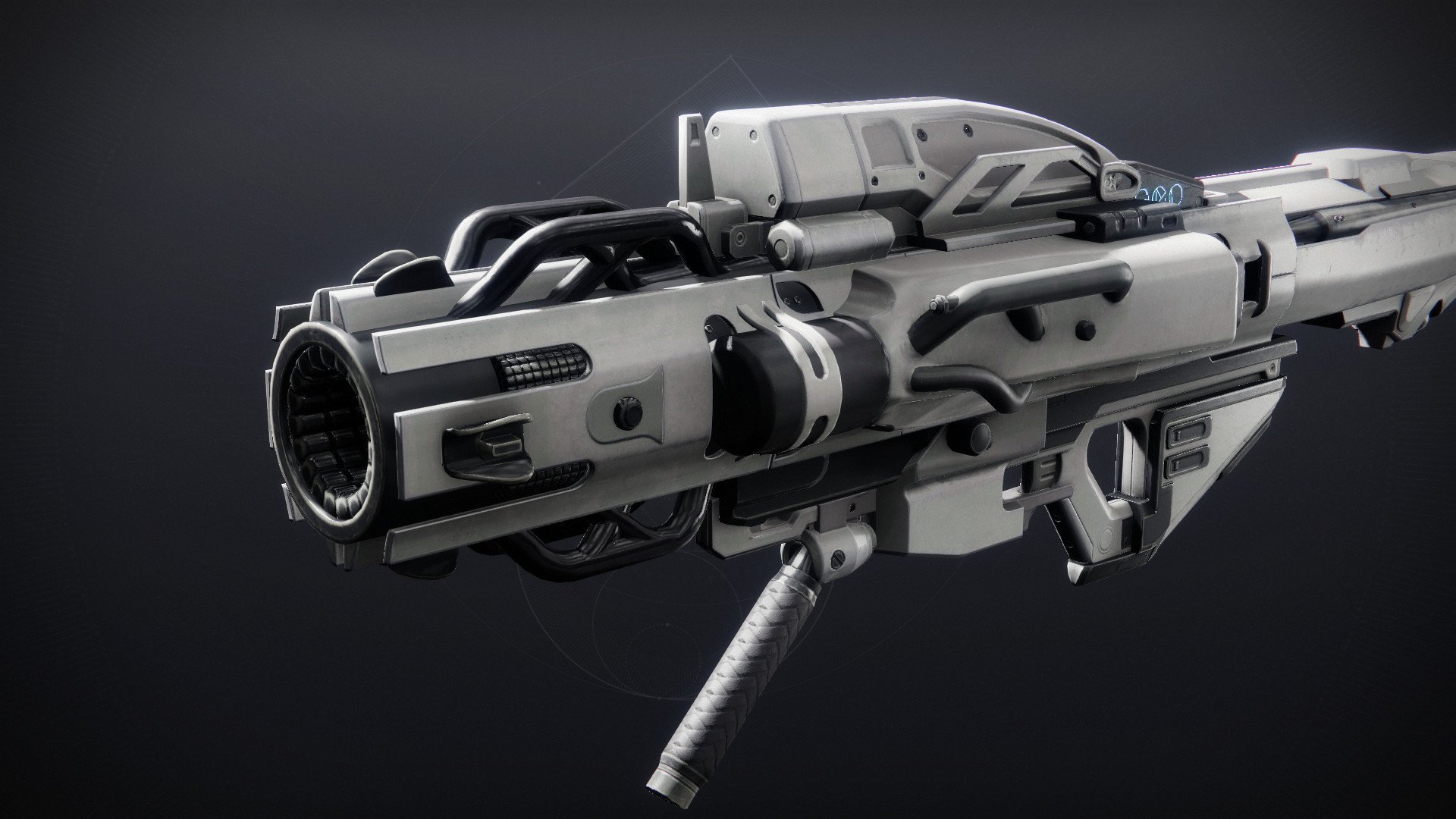 This image is a screenshot of a weapon from the Destiny series of first-person shooter video games developed by Bungie Studios and published by Bungie or Activision. It falls under the screenshot category for a copyrighted computer game or video game, and the copyright for it is most likely held by the company that developed the game. It is believed that the use of a limited number of web-resolution screenshots: