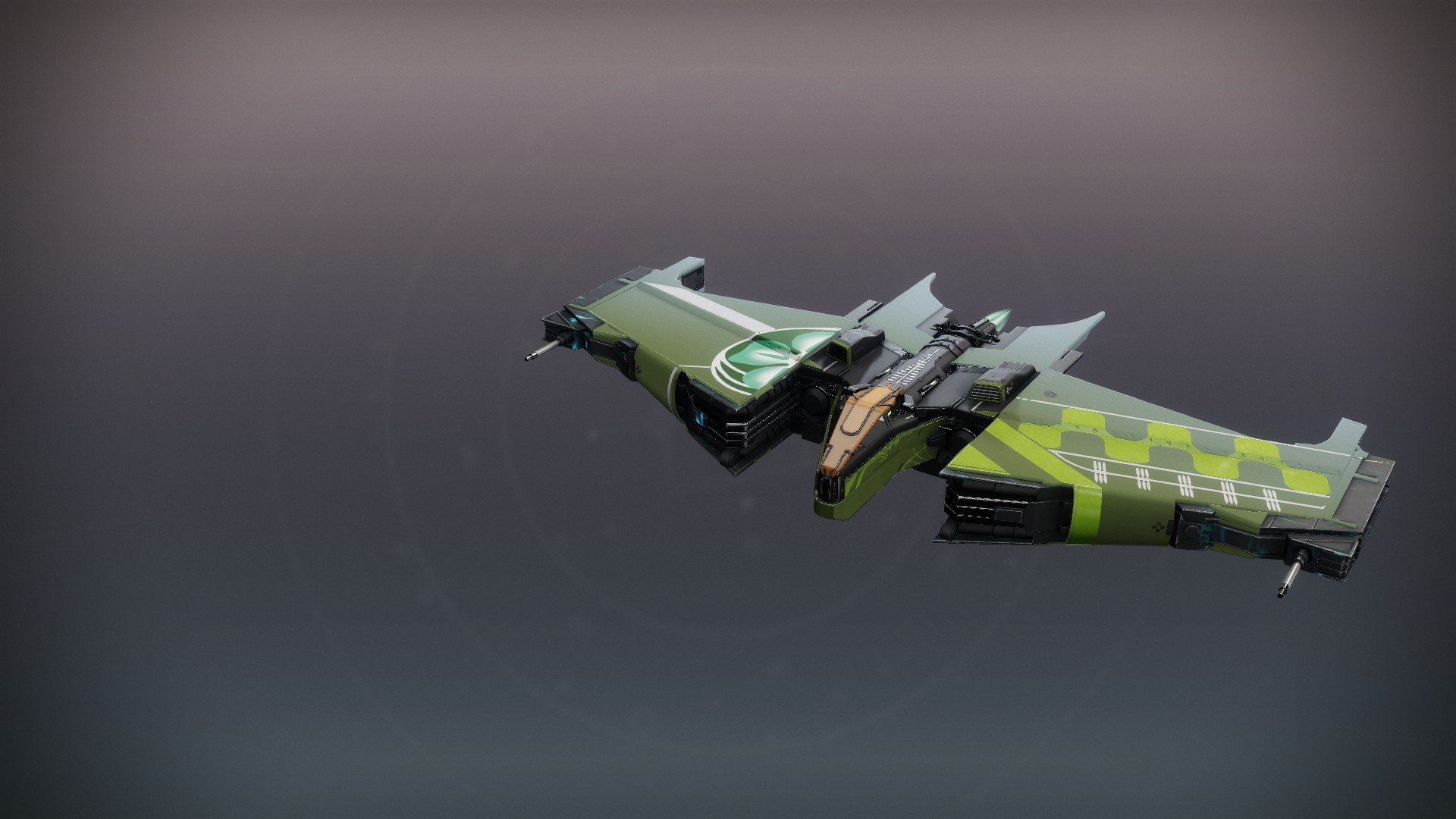 This image is a screenshot of a vehicle from the Destiny series of first-person shooter video games developed by Bungie Studios and published by Bungie or Activision. It falls under the screenshot category for a copyrighted computer game or video game, and the copyright for it is most likely held by the company that developed the game. It is believed that the use of a limited number of web-resolution screenshots: