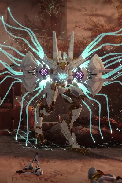 This image is a screenshot of a character or AI unit from the Destiny series of first-person shooter video games developed by Bungie Studios and published by Bungie or Activision. It falls under the screenshot category for a copyrighted computer game or video game, and the copyright for it is most likely held by the company that developed the game. It is believed that the use of a limited number of web-resolution screenshots:
