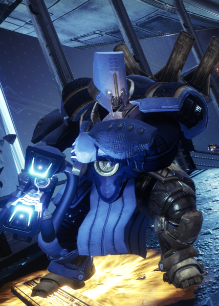 This image is a screenshot of a character or AI unit from the Destiny series of first-person shooter video games developed by Bungie Studios and published by Bungie or Activision. It falls under the screenshot category for a copyrighted computer game or video game, and the copyright for it is most likely held by the company that developed the game. It is believed that the use of a limited number of web-resolution screenshots: