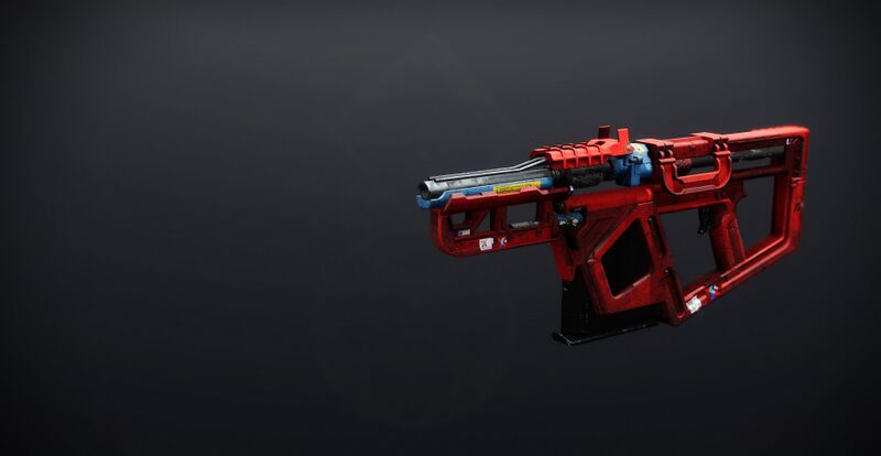 This image is a screenshot of a weapon from the Destiny series of first-person shooter video games developed by Bungie Studios and published by Bungie or Activision. It falls under the screenshot category for a copyrighted computer game or video game, and the copyright for it is most likely held by the company that developed the game. It is believed that the use of a limited number of web-resolution screenshots: