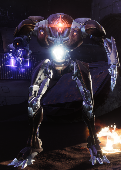 This image is a screenshot of a character or AI unit from the Destiny series of first-person shooter video games developed by Bungie Studios and published by Bungie or Activision. It falls under the screenshot category for a copyrighted computer game or video game, and the copyright for it is most likely held by the company that developed the game. It is believed that the use of a limited number of web-resolution screenshots: