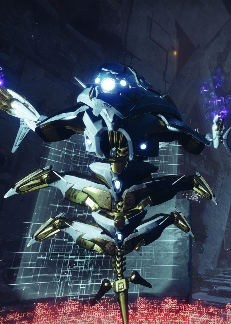 This image is a screenshot of a character or AI unit from the Destiny series of first-person shooter video games developed by Bungie Studios and published by Bungie or Activision. It falls under the screenshot category for a copyrighted computer game or video game, and the copyright for it is most likely held by the company that developed the game. It is believed that the use of a limited number of web-resolution screenshots: