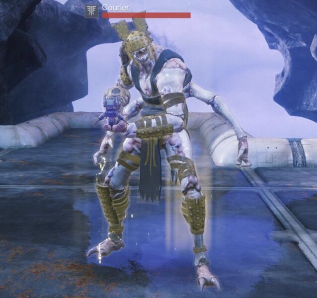 This image is a screenshot of a character or AI unit from the Destiny series of first-person shooter video games developed by Bungie Studios and published by Bungie or Activision. It falls under the screenshot category for a copyrighted computer game or video game, and the copyright for it is most likely held by the company that developed the game. It is believed that the use of a limited number of web-resolution screenshots: