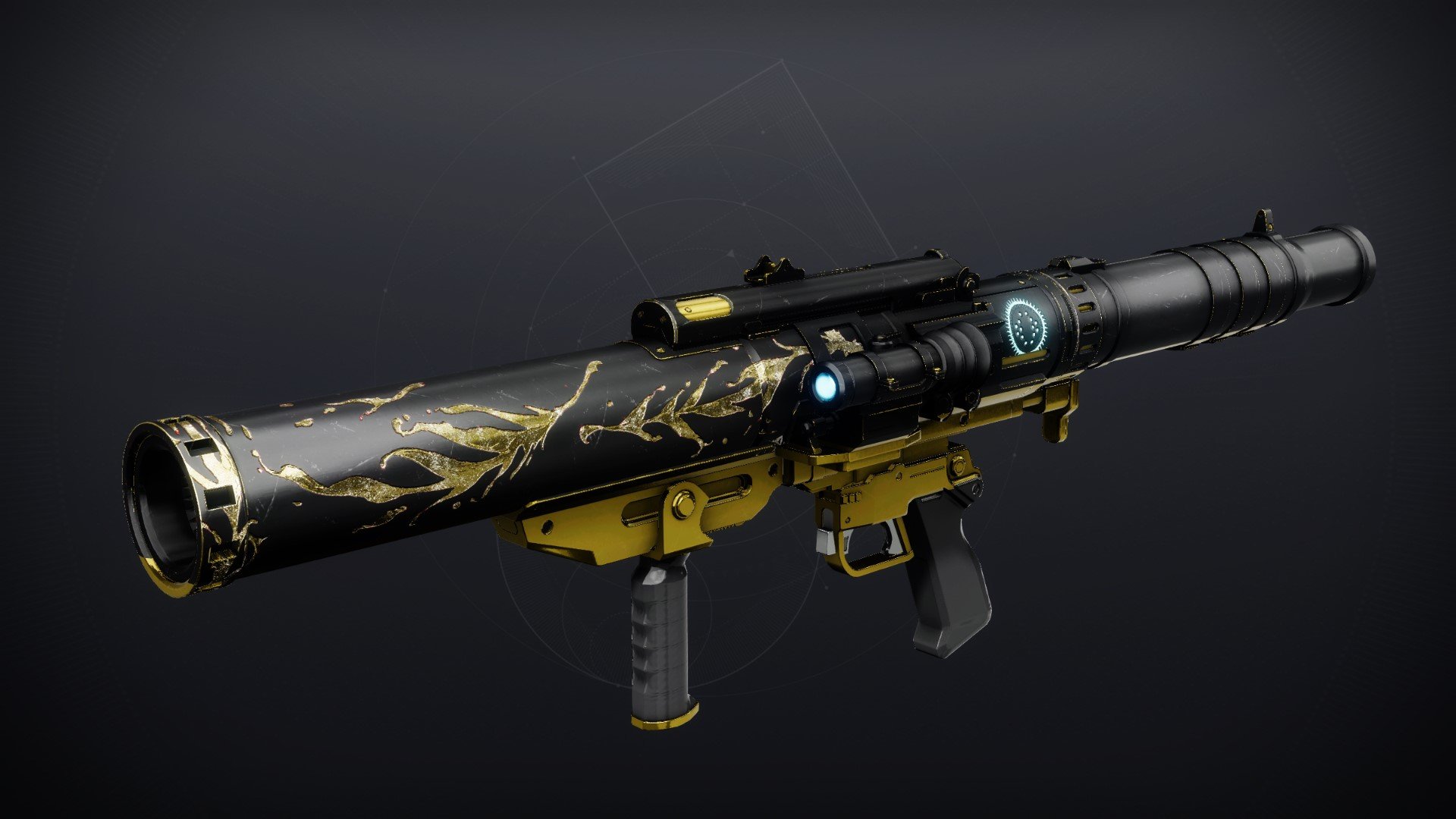 This image is a screenshot of a weapon from the Destiny series of first-person shooter video games developed by Bungie Studios and published by Bungie or Activision. It falls under the screenshot category for a copyrighted computer game or video game, and the copyright for it is most likely held by the company that developed the game. It is believed that the use of a limited number of web-resolution screenshots: