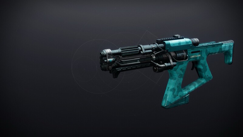 This image is a screenshot of a weapon from the Destiny series of first-person shooter video games developed by Bungie Studios and published by Bungie or Activision. It falls under the screenshot category for a copyrighted computer game or video game, and the copyright for it is most likely held by the company that developed the game. It is believed that the use of a limited number of web-resolution screenshots: