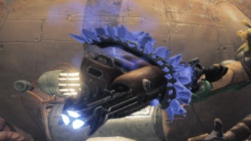 This image is a screenshot of a weapon from the Destiny series of first-person shooter video games developed by Bungie Studios and published by Bungie or Activision. It falls under the screenshot category for a copyrighted computer game or video game, and the copyright for it is most likely held by the company that developed the game. It is believed that the use of a limited number of web-resolution screenshots: