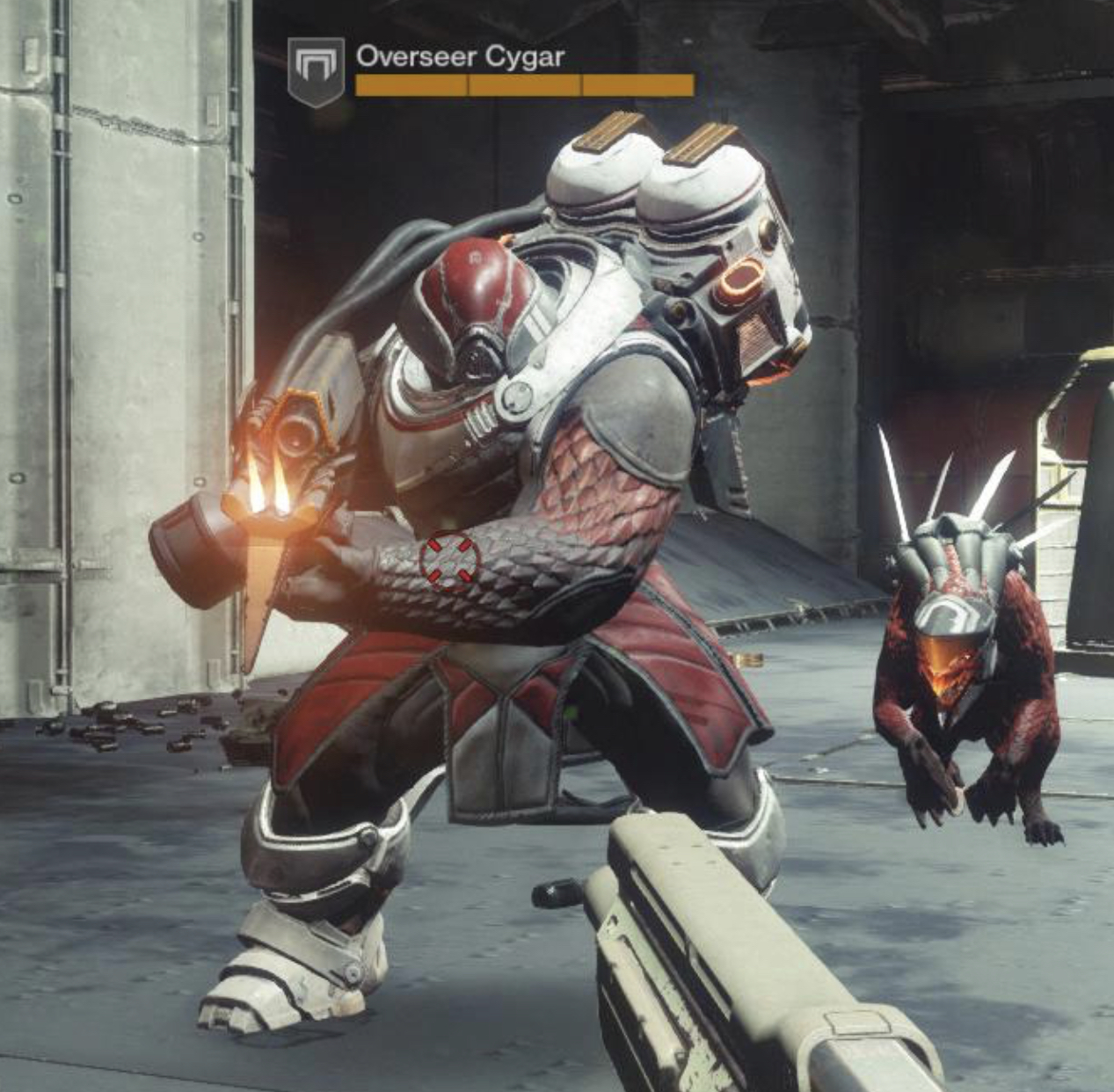 This image is a screenshot of a character or AI unit from the Destiny series of first-person shooter video games developed by Bungie Studios and published by Bungie or Activision. It falls under the screenshot category for a copyrighted computer game or video game, and the copyright for it is most likely held by the company that developed the game. It is believed that the use of a limited number of web-resolution screenshots: