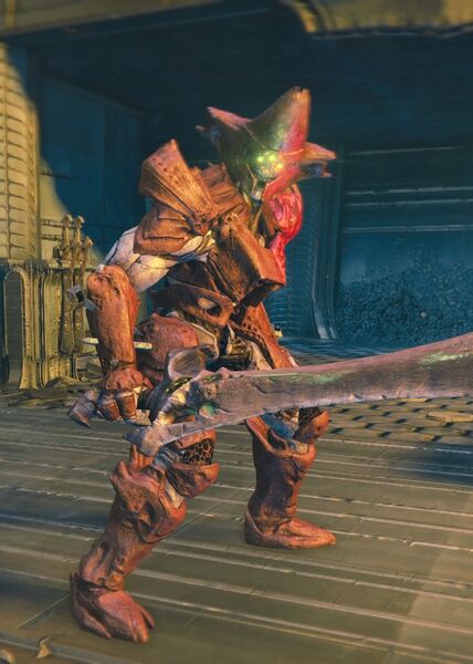 This image is a screenshot of a character or AI unit from the Destiny series of first-person shooter video games developed by Bungie Studios and published by Bungie or Activision. It falls under the screenshot category for a copyrighted computer game or video game, and the copyright for it is most likely held by the company that developed the game. It is believed that the use of a limited number of web-resolution screenshots: