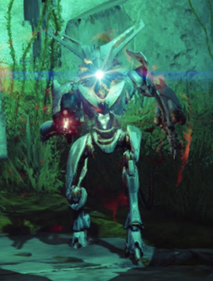 This image is a screenshot of a character or AI unit from the Destiny series of first-person shooter video games developed by Bungie Studios and published by Bungie or Activision. It falls under the screenshot category for a copyrighted computer game or video game, and the copyright for it is most likely held by the company that developed the game. It is believed that the use of a limited number of web-resolution screenshots: