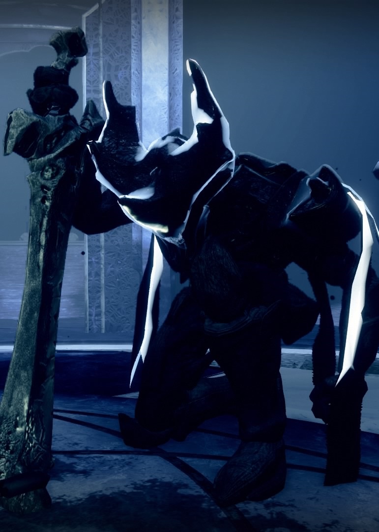 This image is a screenshot of a character or AI unit from the Destiny series of first-person shooter video games developed by Bungie Studios and published by Bungie or Activision. It falls under the screenshot category for a copyrighted computer game or video game, and the copyright for it is most likely held by the company that developed the game. It is believed that the use of a limited number of web-resolution screenshots: