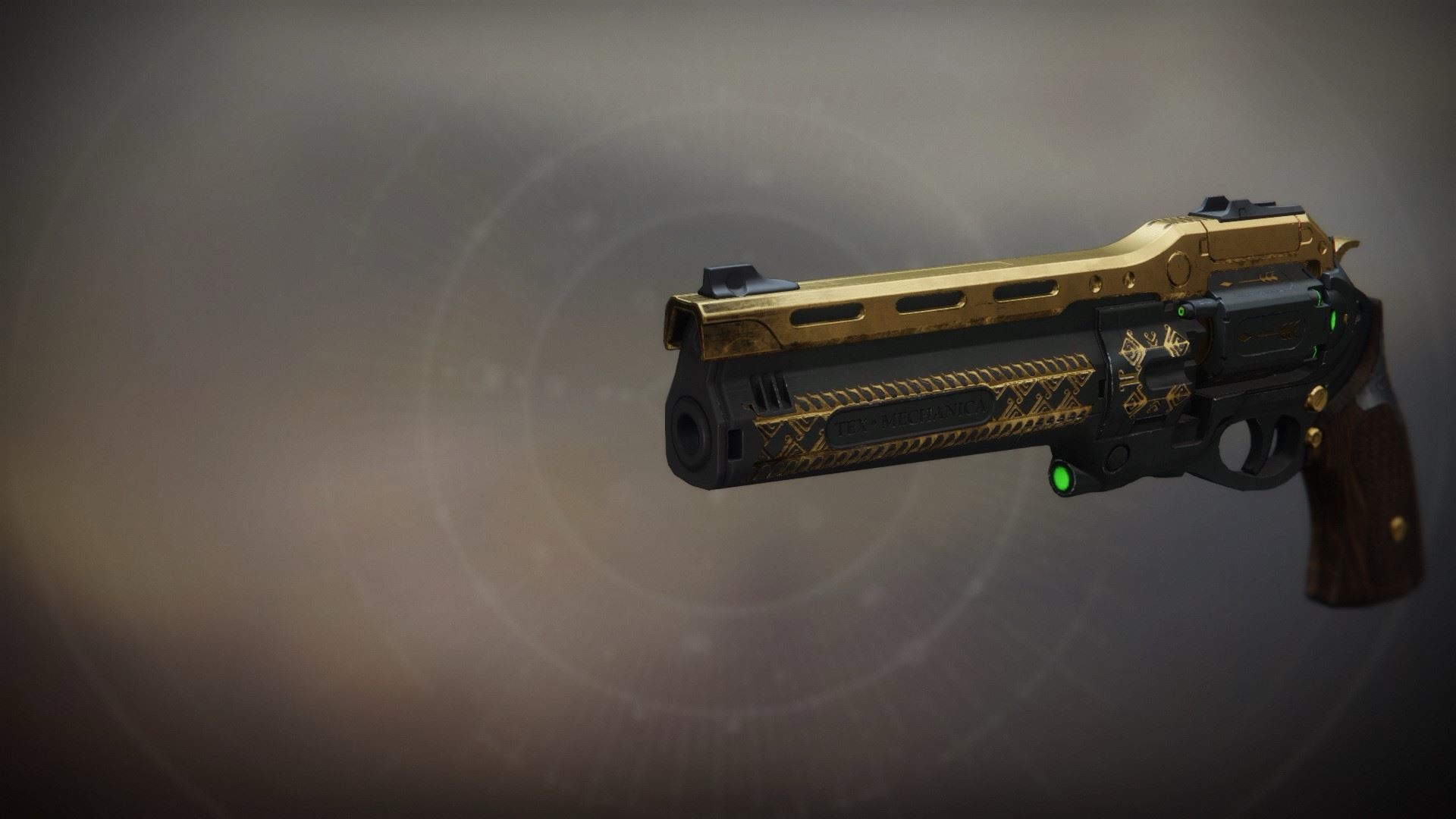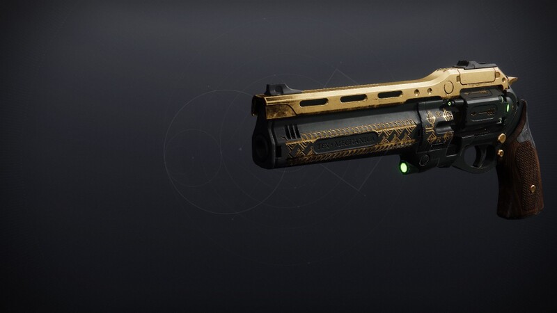 This image is a screenshot of a weapon from the Destiny series of first-person shooter video games developed by Bungie Studios and published by Bungie or Activision. It falls under the screenshot category for a copyrighted computer game or video game, and the copyright for it is most likely held by the company that developed the game. It is believed that the use of a limited number of web-resolution screenshots: