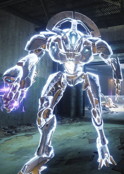 This image is a screenshot of a character or AI unit from the Destiny series of first-person shooter video games developed by Bungie Studios and published by Bungie or Activision. It falls under the screenshot category for a copyrighted computer game or video game, and the copyright for it is most likely held by the company that developed the game. It is believed that the use of a limited number of web-resolution screenshots: