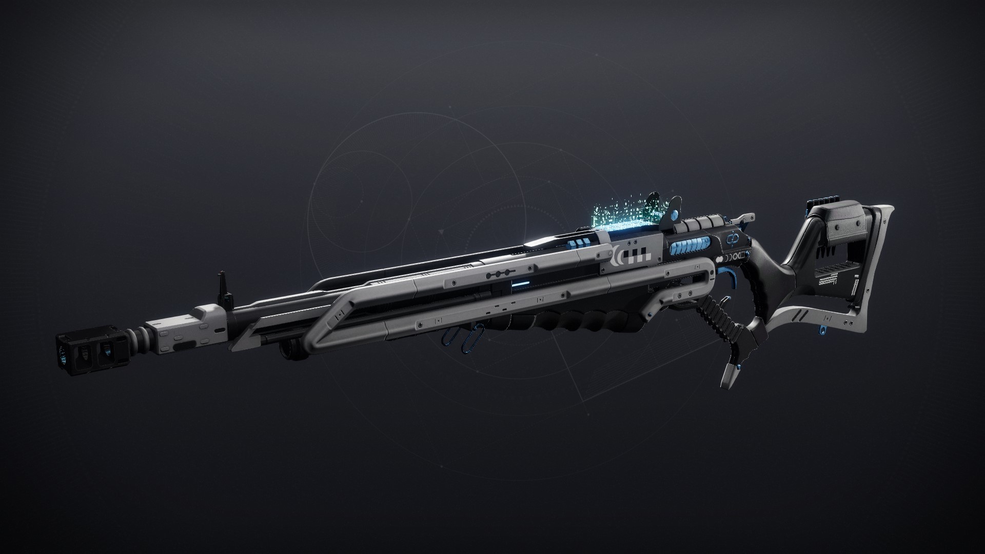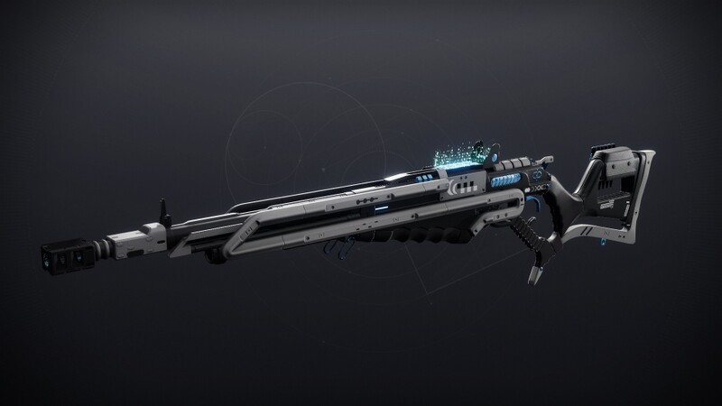 This image is a screenshot of a weapon from the Destiny series of first-person shooter video games developed by Bungie Studios and published by Bungie or Activision. It falls under the screenshot category for a copyrighted computer game or video game, and the copyright for it is most likely held by the company that developed the game. It is believed that the use of a limited number of web-resolution screenshots: